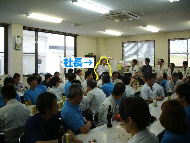 終業時間のチャイムが鳴った後に従業員全員が食堂に集まります。